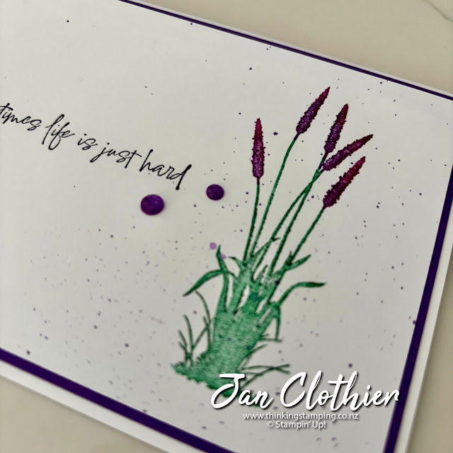 So much to love about this Jan! The use of Stampin' Write markers gives a lovely blend and an almost watercolour look too, and the addition of the splatter is next level - yet still beautifully CAS and totally in keeping with my CAS C&S layout this week!